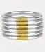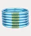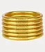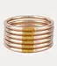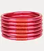 Constructed from flexible polyvinyl carbonate rings infused with delicate gold leaf in a BDG Pink tube, then sealed with the our BuDhaGirl Serenity Prayer bead, our Pink All Weather Bangles® embody versatility. From poolside to boardroom to airport, these bangles stay put, allowing you to navigate any terrain without removal. Encased in a custom BuDhaGirl All Weather Bangles silk pouch, each bangle is a testament to meticulous craftsmanship by artisans (over 20 artisans work on each bangle) in Thailand.