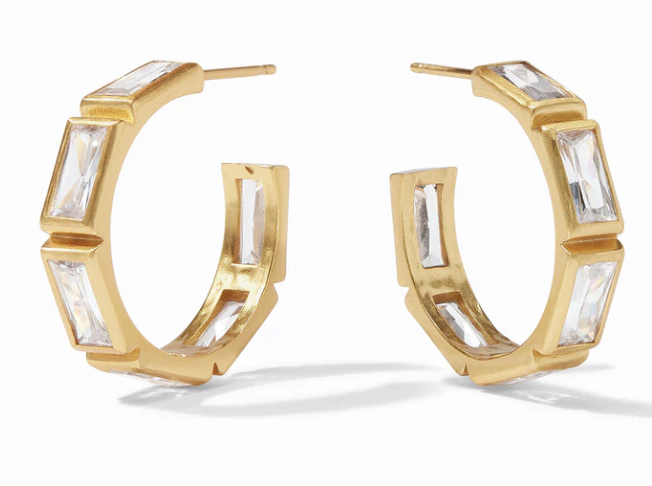 Product description24K gold plate, cubic zirconia, faceted glassDiameter: Medium - 1.1 inches, Large - 1.3 inchesJulie Vos hallmark