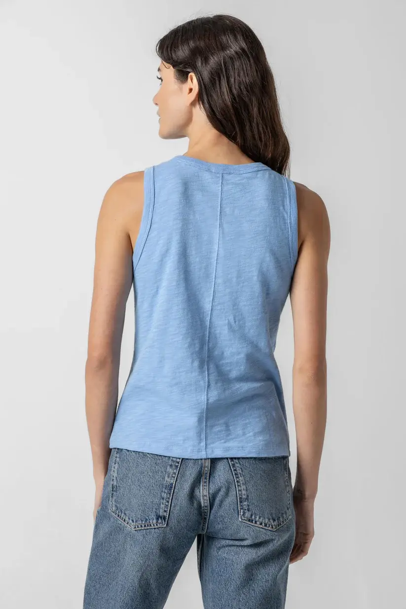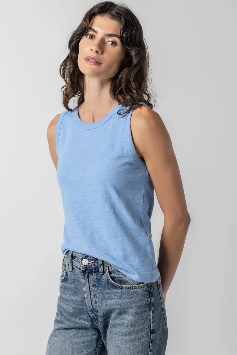 It's designed to fit closer to the body without being skin-tight - and is bra-friendly! We also still have the original Jewel Tank available in our heavier-weight 1x1 Rib fabric.