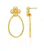 Teardrop hoops of shimmering hammered gold dangle from clover-shaped studs with sweet little berry c..