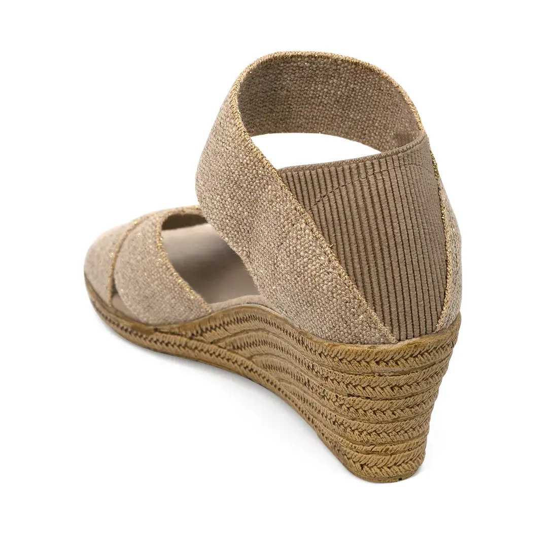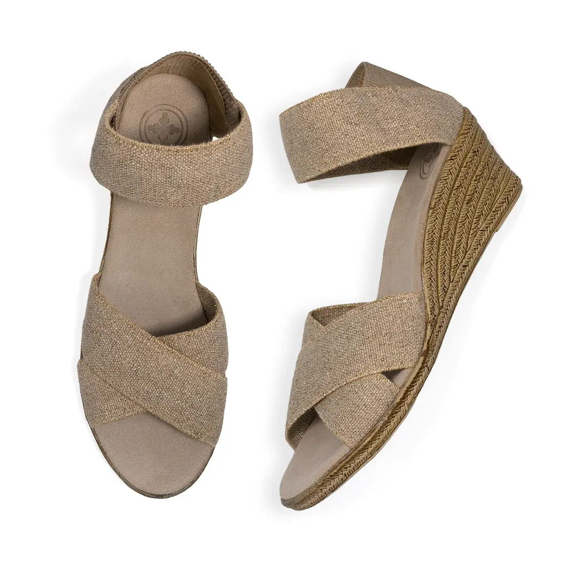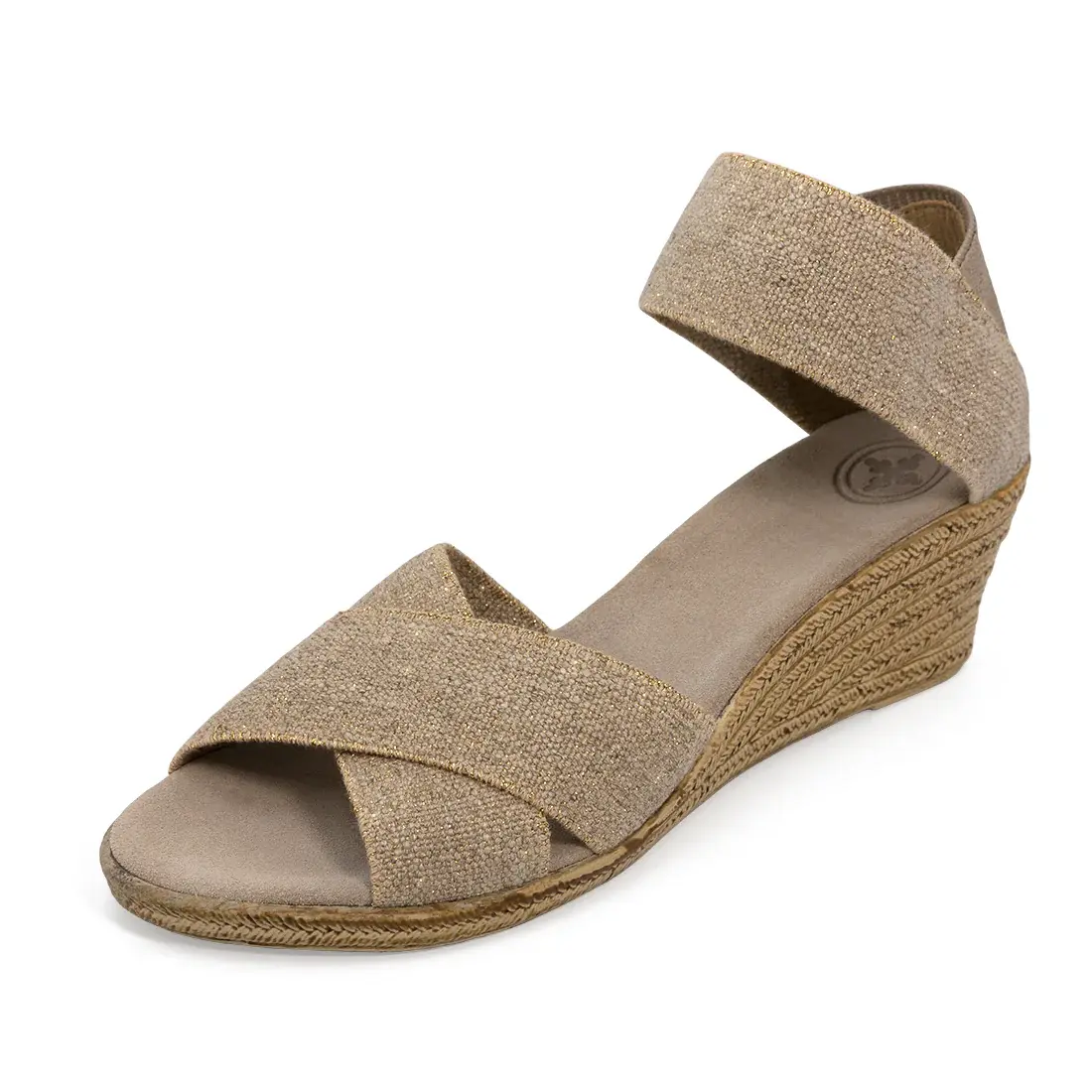 - Stretch upper, crisscross strap, wide ankle strap, faux espadrille bottom