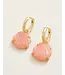 The ocean holds so many beautiful shells and creatures. We are spellbound with these mesmerizing Carved Moon Shell Convertible Hoop Earrings, featuring carved pink dyed jade and 18kt matte gold plating.
