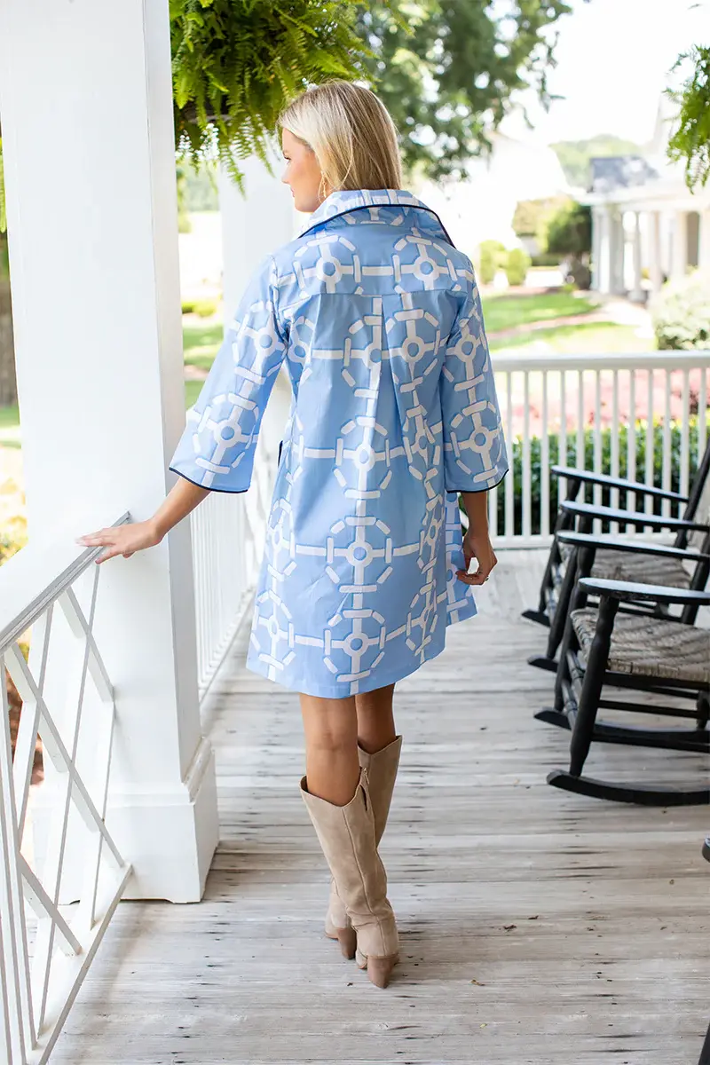 The silhouette is a true A-line that skims the body with effortless ease. An oversized butterfly collar and front patch pockets add character, while contrast piping and lined detailing elevate the whole look with a sense of polish and intention.