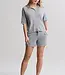 Thanks to delicate contrast scallop trim and airy pointelle stitch accents. Designed with a boxy silhouette and a collared button-front, this short sleeve top features all-over ribbed texture with pointelle stitch detailing along the sides for a breathable feel. The high-hip length makes it perfect for wearing tucked or untucked, while contrast scallop edging adds a playful, polished finish. The coordinating ribbed shorts sit below the waist with a comfortable fit and feature slanted side pockets for ease. A subtle contrast scallop detail at the pocket openings adds just the right touch of charm. Imported.