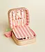 No more tangles, twists or scratches when you pack your baubles & bling . Lined with pink striped co..