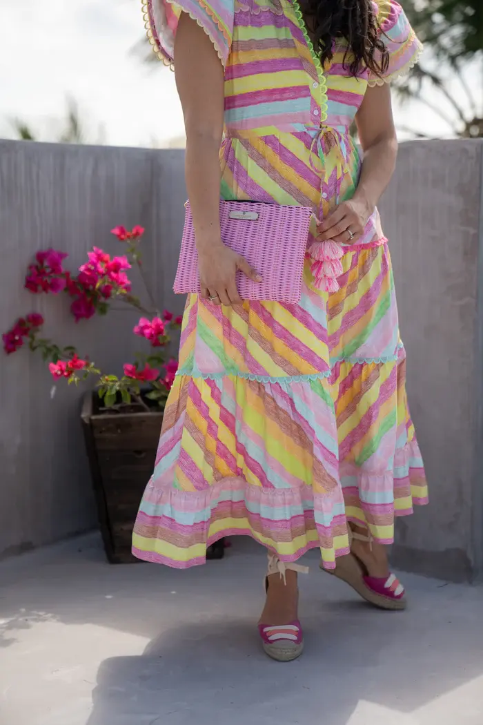 The Lemon Drop is made with recycled plastic by our Guatemalan artisans. Pair your lemon drop based on your day by bringing this clutch along for beach outings, boat excursions, swims, rounds of tennis, or golf adventures. For an enchanting evening, our clutch seamlessly transforms into the perfect companion, effortlessly elevating your outfit for dinners, lunches, or brunches. This piece complements a myriad of looks, from casual to upscale. Pair it with laid-back essentials like leggings, sweatpants, or a beachy cover up and bikini ensemble. Alternatively, let it be the finishing touch to a more refined outfit, such as a charming sundress or an elegant skirt. Embrace the beauty of versatility with our clutch, designed to effortlessly enhance your wardrobe.