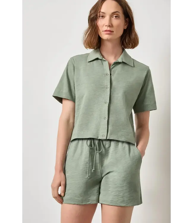 The Elbow Sleeve Button Down Tee is an elevated essential in our mid-weight textured slub knit. More substantial than a tee, this fabric holds its shape beautifully while offering an effortless feel.
