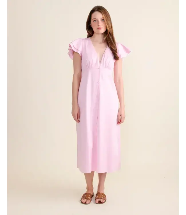 Introducing The Frances Dress! Perfect for any spring occasion, we love all of the feminine details this dress has to offer: flutter sleeves, a v-neckline and button front. Pair with your favorite heels or a more casual sandal to complete the look.