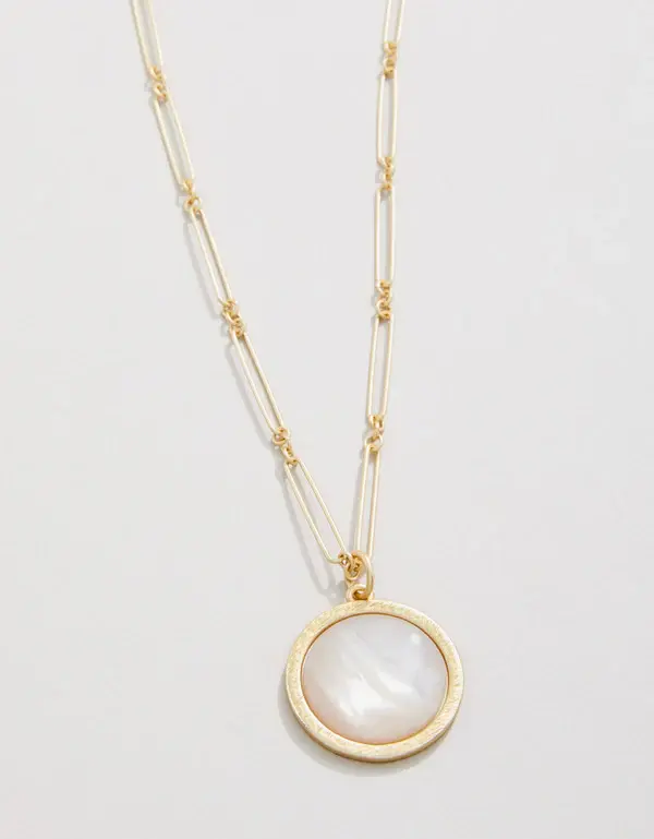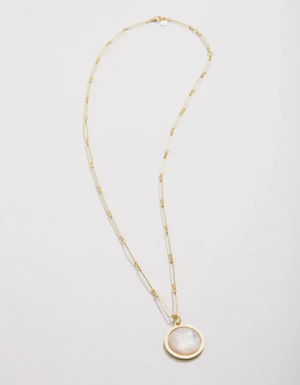 SpartinaFRANKLIN NECKLACE 24" MOTHER-OFPEARL(0) $56.00 Excl. tax In stock Add to cartLogin for wishlistPay directFree shipping From $50.00Shipped today? You got 00 : 00 : 00DescriptionShareShimmering mother-of-pearl pendant framed by a textured golden ring on a lustrous 18kt matte gold plated thin paperclip chain. Simply beautiful with any outfit. A classic you will be pulling out of your jewelry case again and again. Facebook Tweet Pin it WhatsappAdd to comparison list
