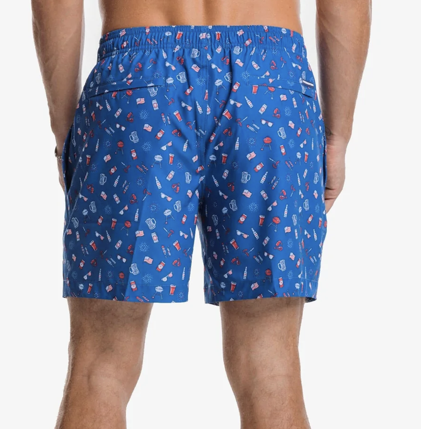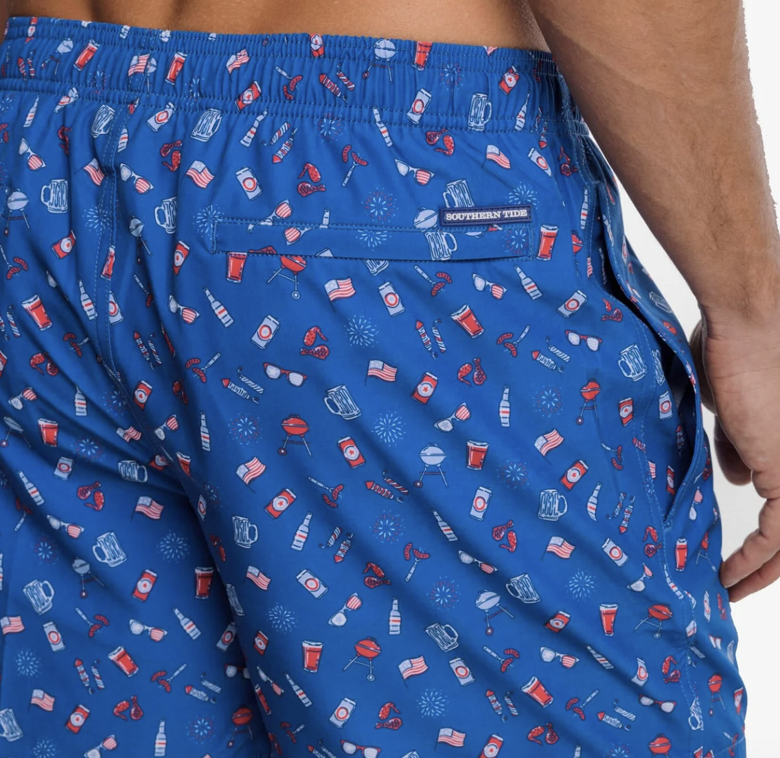 For those who love those classic American cookouts. Side pockets and a zippered back pocket give you room to store all the essentials, while the water-resistant, quick dry UV protective material lets you effortlessly transition from the water to the party