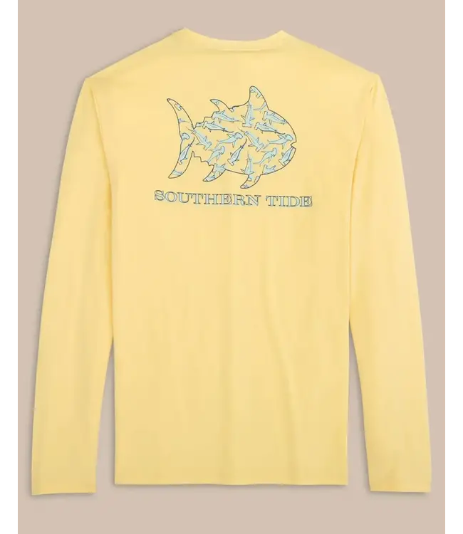 Embrace the thrill of the ocean with our shark-patterned skipjack long sleeve performance tee. Crafted from flexible fabric with UV protection and wicking properties, this performance t-shirt is perfect for any seaside adventure.