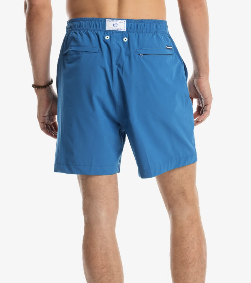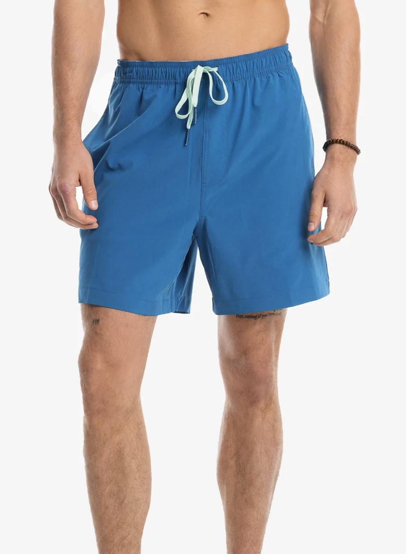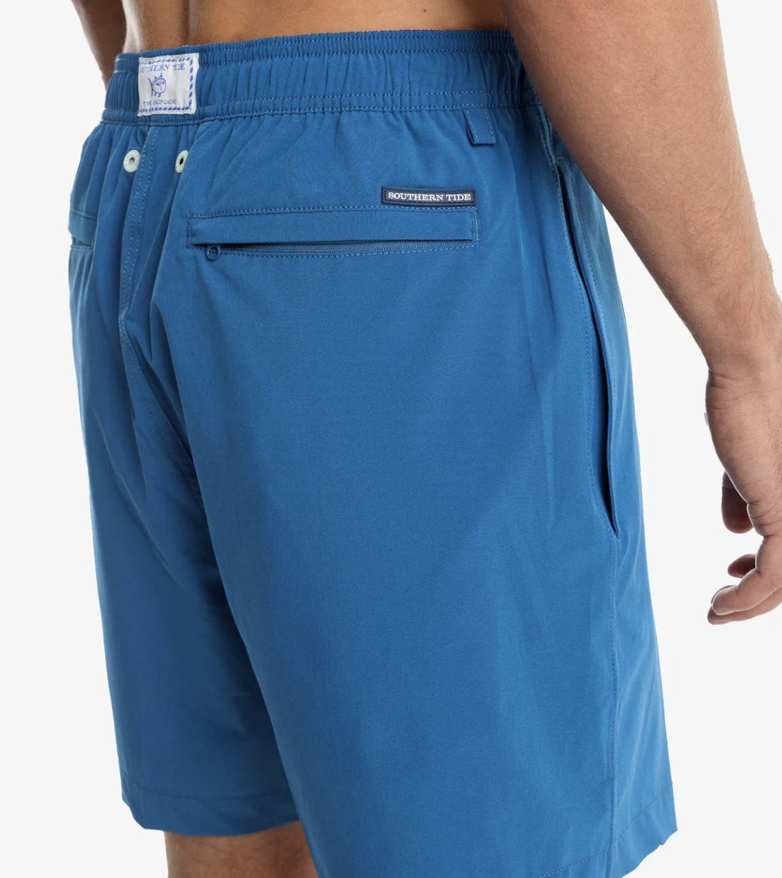 Made with recycled materials, this consciously-crafted swim trunk is everything you love about our classic swim but better. Our updated swim trunk also packs right into its own side pocket - making it the perfect, compact companion for any impromptu water adventure.