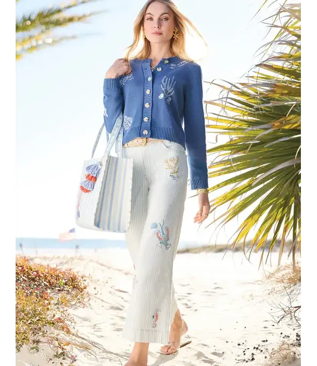 Made for mornings at the beach, afternoons shopping, and evenings on your porch, the Flagler Resort Stripe Mable Wide Leg Jeans are your new vacay favorites!