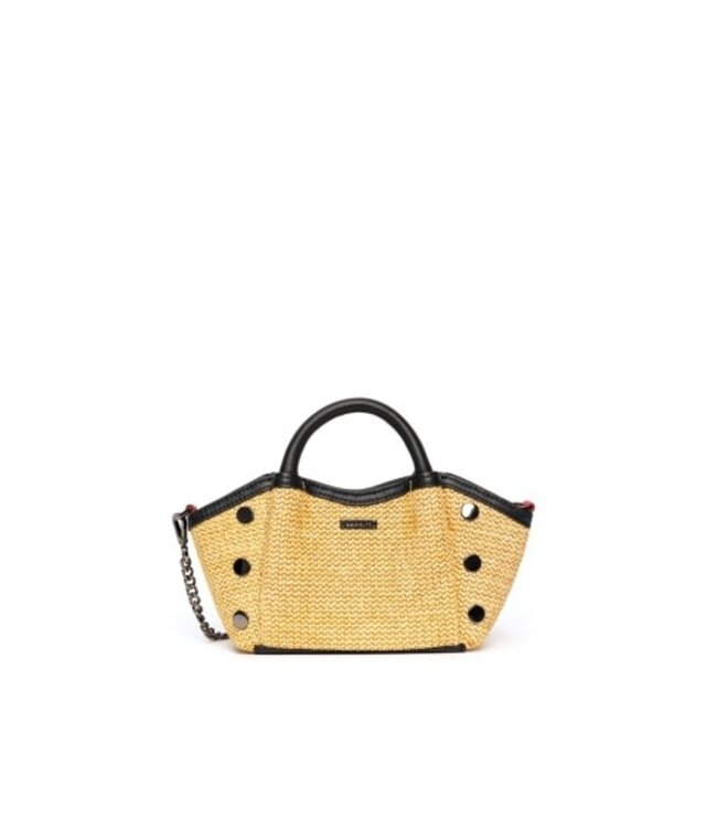 - Crafted with a combination of chaparral raffia and classic black semi-veg tanned and pebbled leathers