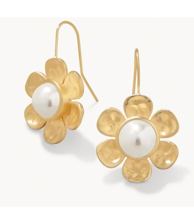 Golden primrose petals wrap around bold faux pearls in these vintage inspired Primrose Drop Earrings. These earrings shine in Matte 18KT Gold Plating.