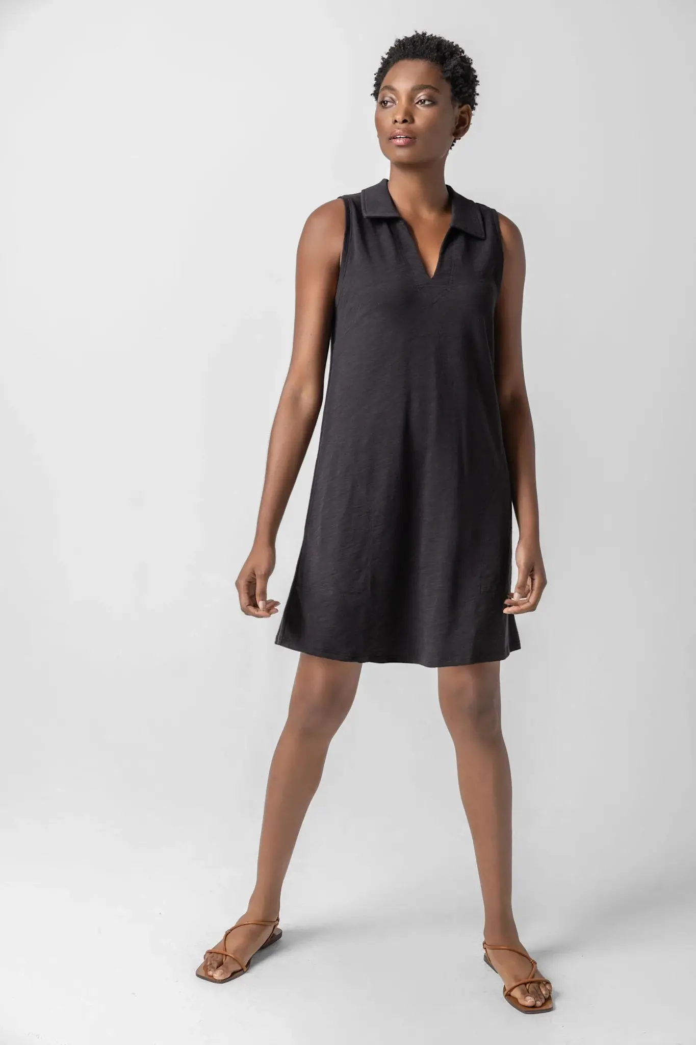 Lilla PSLEEVELESS COLLARED DRESS(0) $174.00 Excl. tax In stock Add to cartLogin for wishlistPay directFree shipping From $50.00Shipped today? You got 00 : 00 : 00DescriptionShareThe Sleeveless Collared Dress in our Textured Knit fabric is a versatile piece with an effortless shift silhouette. Featuring a collar, split neckline, and practical pockets, this dress is full of subtle details that elevate its simplicity. Facebook Tweet Pin it WhatsappAdd to comparison list