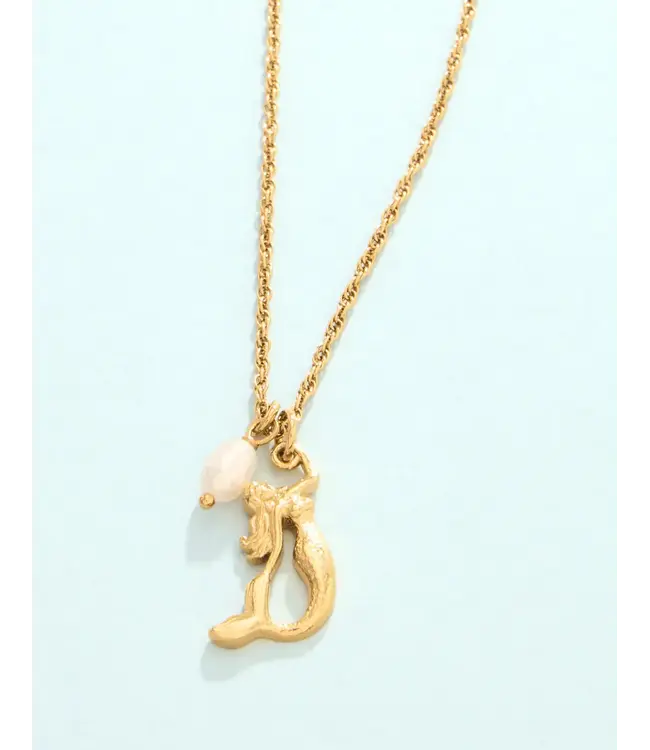 Discover the magic of the sea with our enchanting Mermaid Necklace. Plated in tarnish free, water resistant 14kt shiny gold, this everyday necklace features a freshwater pearl and can be worn during exercise, in the shower, or on sunny days at the beach.