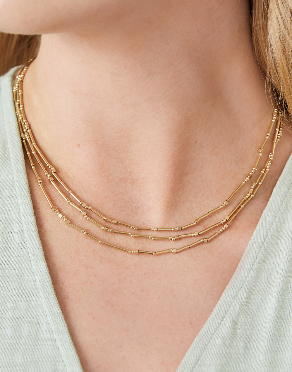 SpartinaSP MERMAZING LAYERED NECKLACE 17"(0) $88.00 Excl. tax In stock (3) Add to cartLogin for wishlistPay directFree shipping From $50.00Shipped today? You got 00 : 00 : 00DescriptionShareThis Mermazing Necklace wraps your neck in three layers of mesmerizing tiny metal beads. Designed to shine through exercise, showers and a summer at the beach in tarnish free 14kt gold vacuum plating. This is a necklace you will never have to take off. Facebook Tweet Pin it WhatsappAdd to comparison list