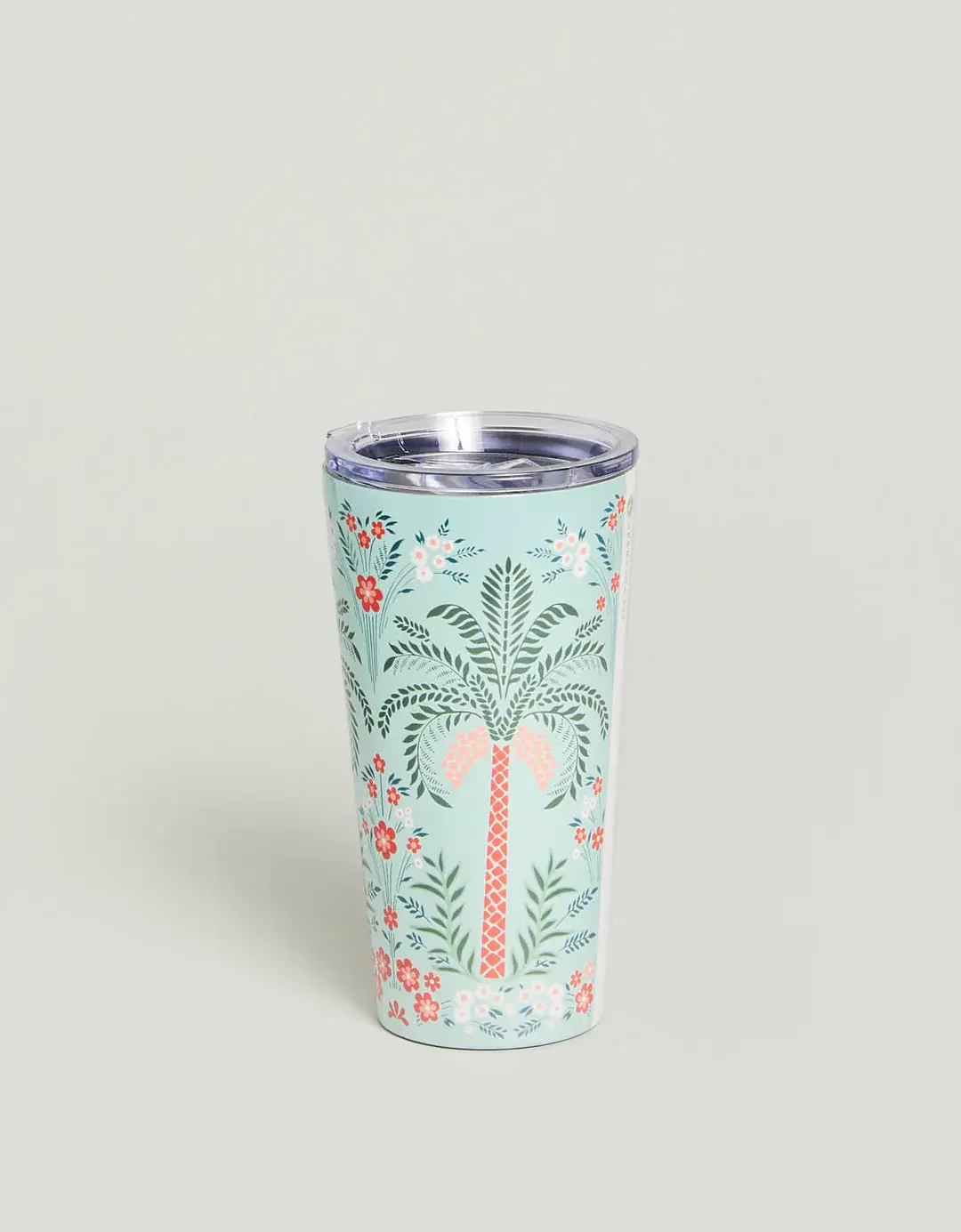 The clear lid features a slide closure to prevent spills and the lands softly on its rubber bottom. Keeps hot drinks hot and cold drinks cold.
