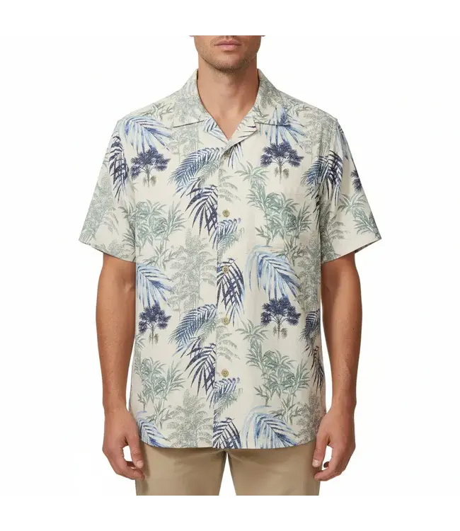 Tommy Bahama Men's Vista Mar Bravo Beach Camp Shirt in Starbright. This Vista Mar Bravo Beach Camp Shirt by Tommy Bahama features printed knit short sleeve button front shirt with wicking & quick dry, chest pocket and piping details.