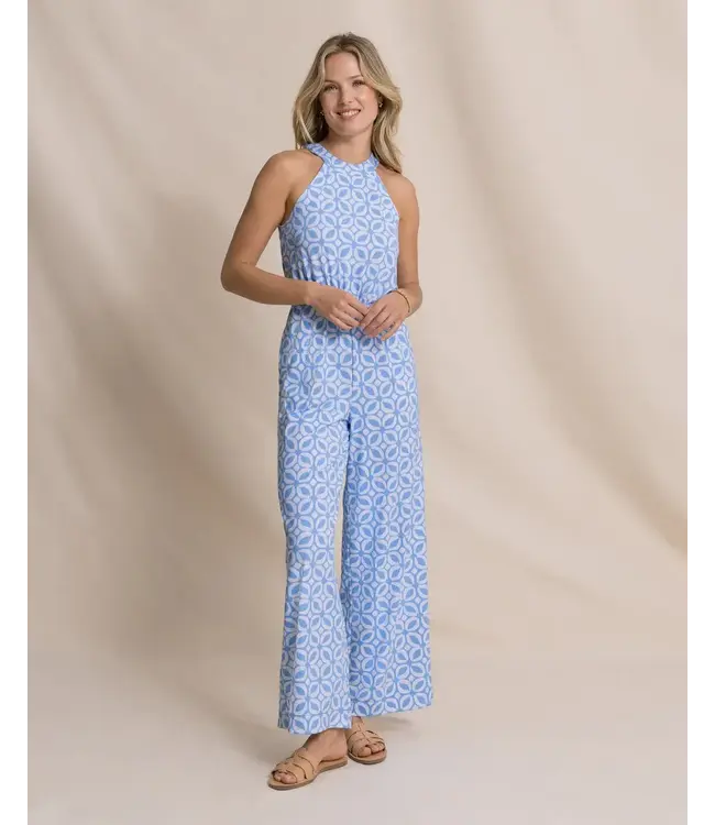 Karrigan Printed Performance Jumpsuit. Crafted from stretch performance fabric with wicking and cooling properties, it’s lightweight, flattering, and made for all-day wear transitioning effortlessly from daytime plans to relaxed weekends with coastal flai